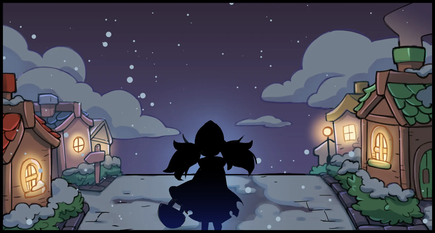O frio da estrada coberta de neve entrava em seus pés descalços, e o corpo da moça era cercado por um palito de fósforo vestido com roupas finas de inverno e um avental. Uma e outra vez, e de novo. Era uma noite de neve. A última noite do ano. Era uma noite sem lugar ou hora, apenas uma noite. A vendedora de fósforos sentia como se aquela noite se repetisse eternamente. A única coisa que ela conseguia se lembrar era da paisagem e das memórias daquele dia. Apenas a lembrança de andar descalça pela rua na última noite do ano, tentando vender fósforos às pessoas.